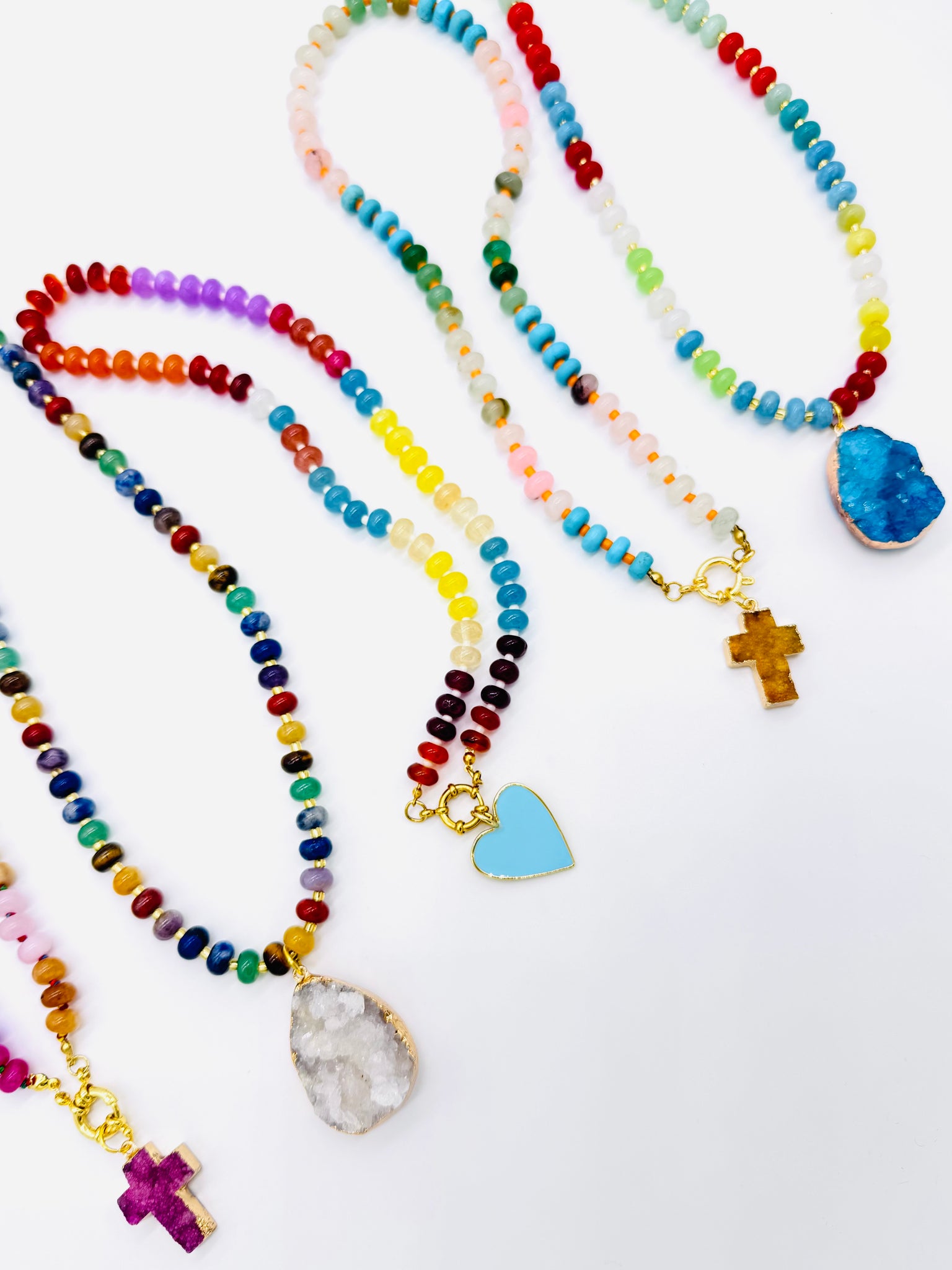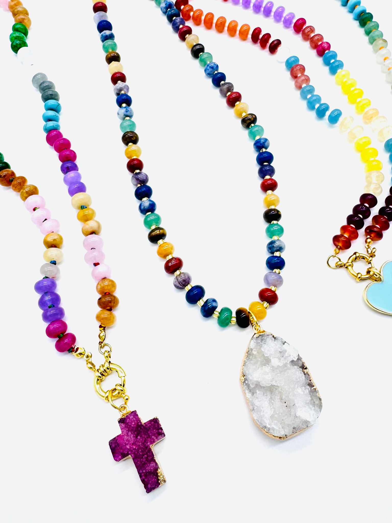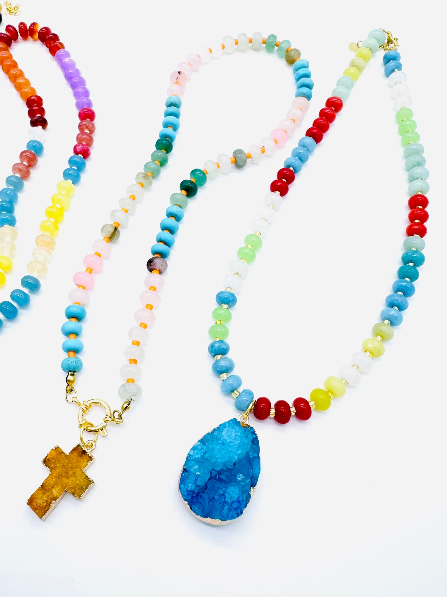 Colorful Necklaces with Druzy or Enamel Charms. Each Necklace is made from Stone Roundel Beads. Choose from 5 Different Designs!